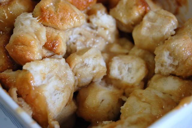 This bread is crack. I mean it- it's literally addictive. My friend Kim made this the first time I had it, and if I didn't like her so much I would think she were trying to sabotage my life with this bread. I was introduced to monkey bread a few years ago when Travis and I first met and his mom made it for one of my visits, and I instantly fell in love.... with the bread. Oh with Travis too, I guess!