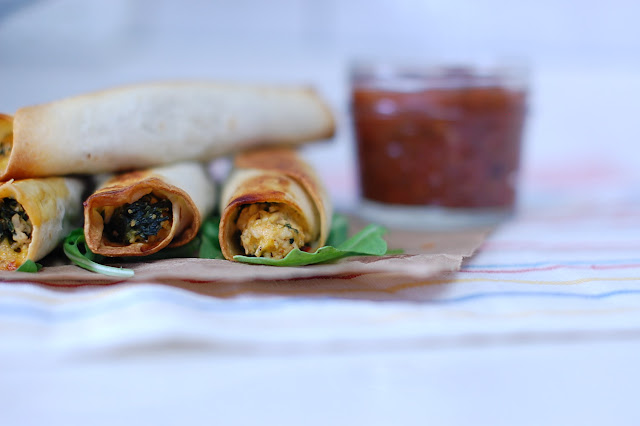 If you've read some of my blog posts, you know that if a dish has chicken and spinach in it, more than likely I will make, devour, love and rave about it. These baked chicken flautas are no exception. And they're baked, not fried! Bonus!