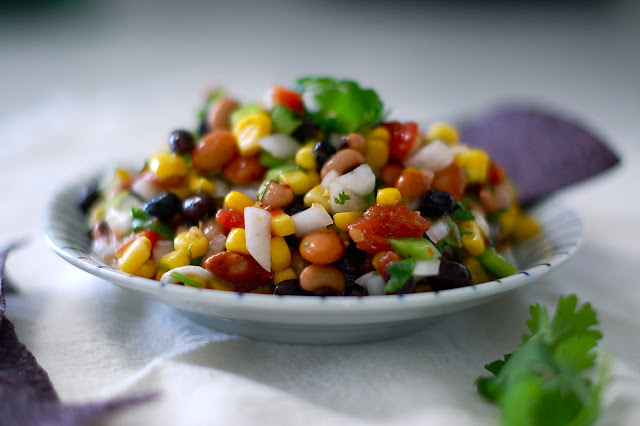 This "caviar" was perfect for one such cookout. Hearty, filling and different from the usual potato salad-- it was just delicious! Not to mention completely easy to put together since it involves NO COOKING whatsoever! Sometimes in the last month or so of summer, I am very grateful for dishes like these that pack in the flavor without steaming up the whole house!
