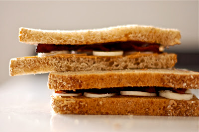 Honestly though, eating a half size version (only 1 piece of bread cut in half) would make a pretty decent recovery snack after a workout. Whole wheat with fruit and protein are a pretty awesome combination to prevent your stomach from feeling like it's going to devour your entire existence an hour after you get home.