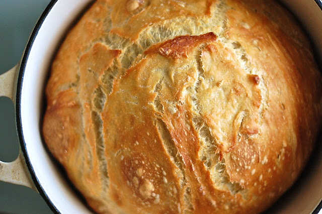 Since I first found the recipe, I've made this bread about once a week. It comes out wonderful and delicious every single time. The biggest tip I have for you though is to flour the final ball of dough before you pop it into the dutch oven. I forgot to do that step just once and the bread glued itself to the pot. It was NOT very fun trying to pull that thing out of the pot. It's been deliciously wonderful for everything I've used it for, so it's possibilities are endless! Please promise me you'll make it soon and let me know how it turns out for you, ok? Ok.