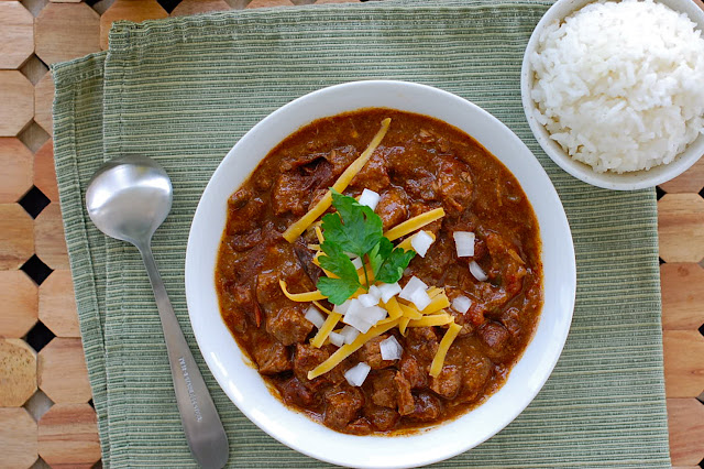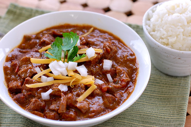 Chili is a very personal dish. Have you ever noticed that? I don't think there is another dish, except maybe pizza, that evokes such strong opinions. Everyone and their brother has the "right" way to make chili- with beans, without beans. With tomatoes, or without. Ground beef or cubed chuck. Suet or bacon fat. People get pretty passionate about it too- especially Texans, which I know from experience since I am a Texan. We are definitely the most opinionated of them all in the chili debate, and I'm not ashamed to say it.