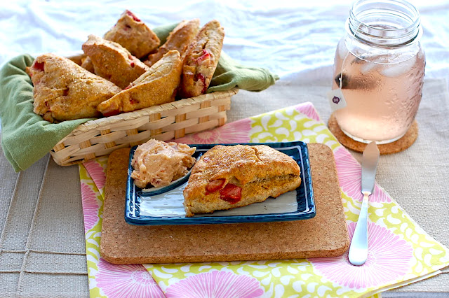 The upside is that the sunshine now is much more frequent than in December or January, when it rained basically all day every day. Sunshine means fresh fruits and vegetables, locally grown and harvested, which means they simply taste amazing. The strawberries I used for these scones, for example, were insanely expensive… approximately $4.50 for SIX little berries, but man, oh, MAN are they tasty. I figured I would compromise my weather with your weather and incorporate some fresh fruits into a pastry that for whatever reason reminds me of winter, hot cocoa, and chopped firewood. I can't help it, I'm an enigma.