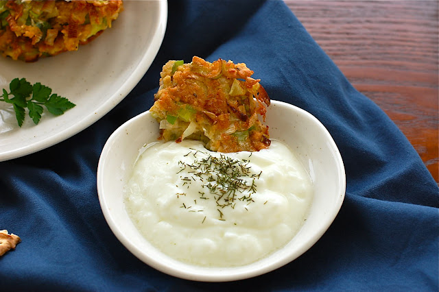 I realize that Latkes are usually a dish made at Hanukkah, and if we're telling secrets... I actually made these in early December and have had the pictures sitting in iPhoto, waiting to be utilized. Like most things in my life lately though, my brain is about 2-3 weeks behind the actual times and the beginning of Passover just snuck up on me and I didn't want to be posting a matzo ball soup recipe in the middle of Passover, since that would just be strange. Leeks can be slightly bitter, right, so that counts for Passover... right? Just say yes and appease me!