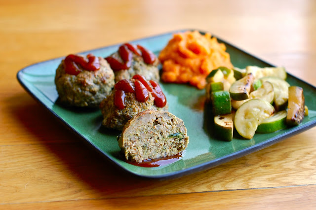 But anyway, does the concept of meatloaf kind of freak anyone else out, or is it just me? I don't even have a good explanation as to why- maybe because I think bread when I hear loaf, which makes sense because meatloaf has breadcrumbs in it, but the thought of slices of meat... just not really appealing. However, making them in the shapes of large meatballs is something I can get on board with, AND it's built in portion control. *Winning*